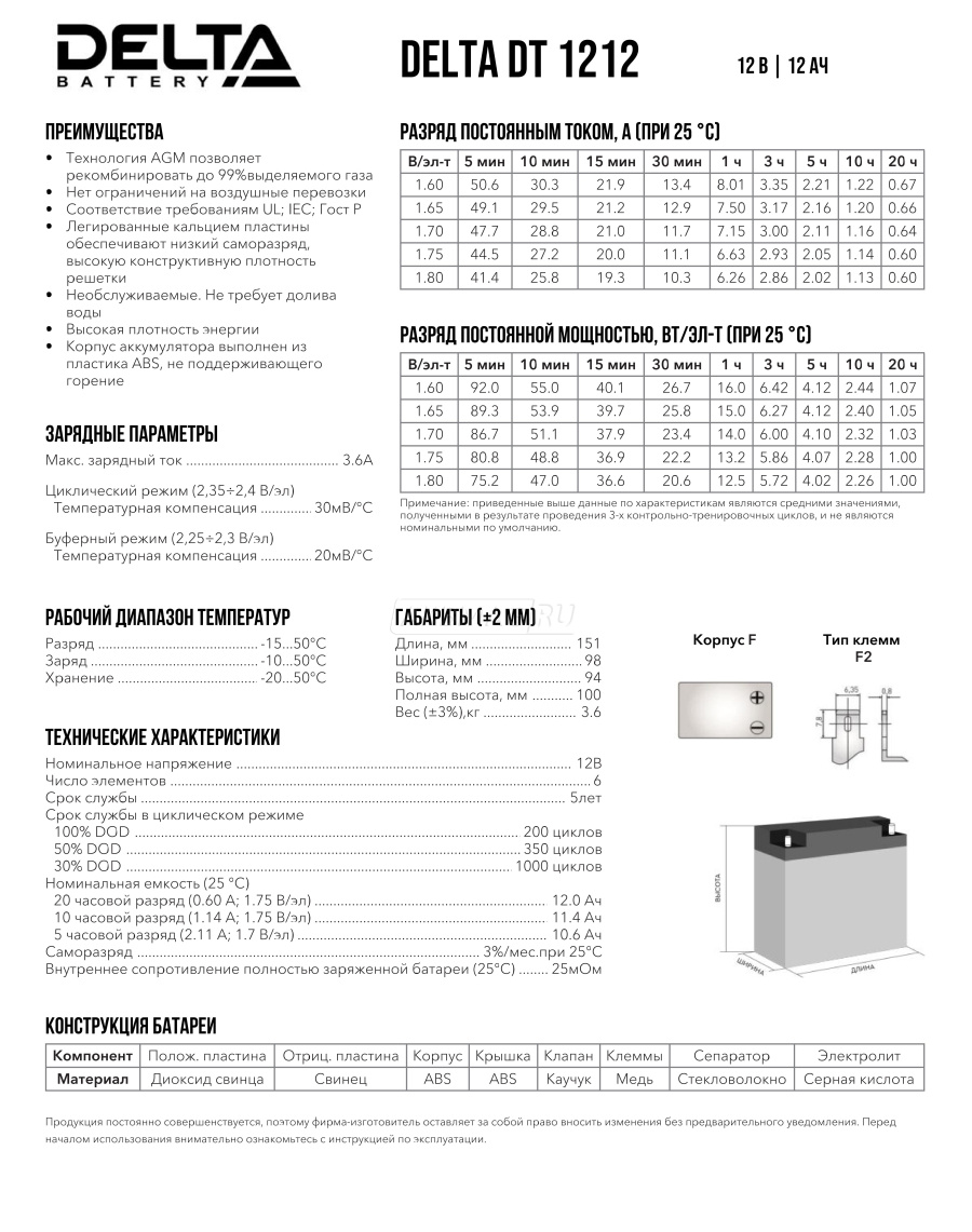 Габариты (мм) | 151x98x101 (длина, ширина, высота с клеммами) |